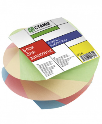 Блок для записи 9х9х5см. Бумага 5-ти пастельных цветов, плотность 80гр/м.кв. Блок проклеен по одному краю и закручен в спираль. Упакован в термоусадочную пленку с цветным вкладышем.