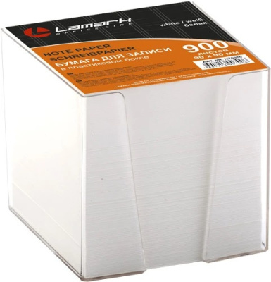 Бумага для записи Lamark в прозрачном пластиковом боксе, белая. Размер листа 90х90 мм, 900 листов, плотность 80 г/м2, белизна 96%, в термопленке.