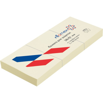 Клейкая бумага для заметок Attomex 38x51 мм, 100 листов, желтая, 3 шт в упаковке