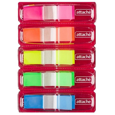 Пластиковые клейкие закладки Attache. Закладки клейкие, ширина которых составляет 12 мм, могут служить закладками в документах, использоваться для записи краткой информации, для выделения текста. Яркие неоновые цвета закладок акцентируют Ваше внимание на нужном моменте в документе или тексте.