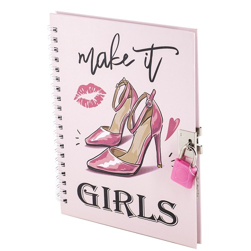 Подарочный блокнот 13,0 см * 18,0 см с гребнем Alingar, с твердой обложкой с матовой ламинацией, на замочке, 46 л., линия "Гламур. Туфли".