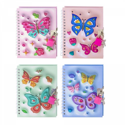 Подарочный блокнот 11,0 см * 15,0 см , гребень, Alingar, ламинация, замочек, 48 л., клетка, "Объемные бабочки".