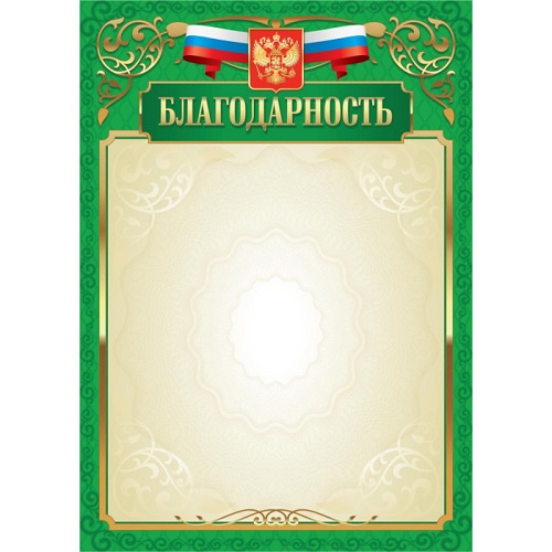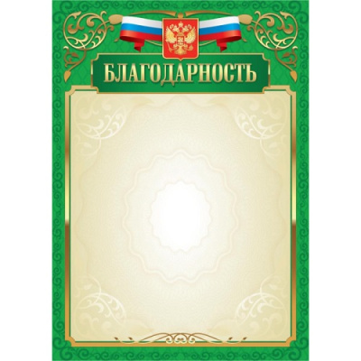Грамота формата А4 (210×297 мм), материал: мелованная матовая бумага плотностью 105 г/кв.м (подходит для печати на большинстве принтеров).