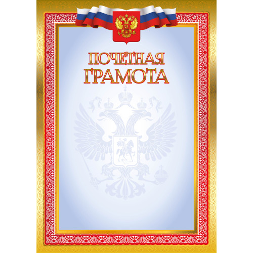 Грамота формата А4 (210×297 мм), материал: мелованная матовая бумага плотностью 105 г/кв.м (подходит для печати на большинстве принтеров).
