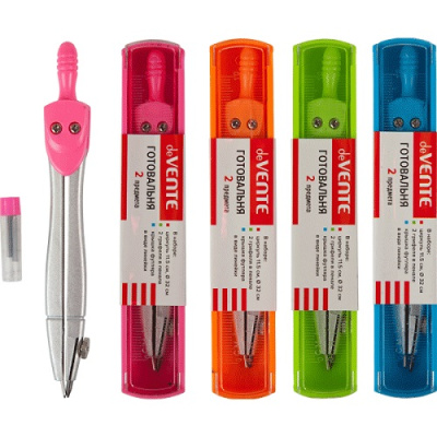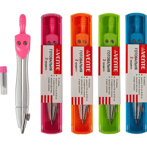Готовальня "deVENTE" (02 предмета) 2 грифеля в комплекте, в пластиковом футляре с линейкой, цвета пластика ассорти