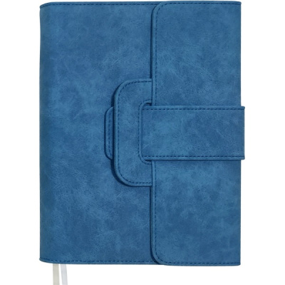 Ежедневник недатированный "deVENTE. Jesse" A5 (145 ммx205 мм) 320 стр, кремовая бумага 70 г/м², печать в 2 краски, твердая обложка из искусственной замши с поролоном, фигурная створка на кнопке, отстрочка, перфорация, 2 ляссе, в подарочной коробке, синий