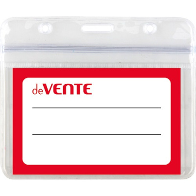 Бейдж "deVENTE" 100x80 мм, горизонтальный, ПВХ 280 мкм, прозрачный, на молнии.