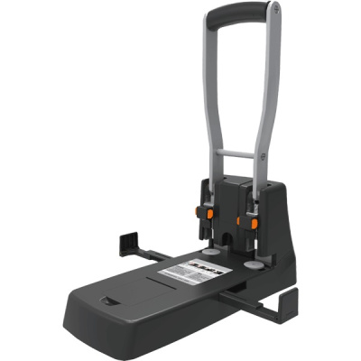 Дырокол большой мощности "deVENTE" (150 листов) 40,1x13,8x33,6 см, металлический, с встроенной металлической линейкой и меткой центрирования, пластиковым поддоном для конфетти, с прорезиненной ручкой-рычагом, с возможностью замены ножей и пластиковых дисков, в картонной коробке, черный