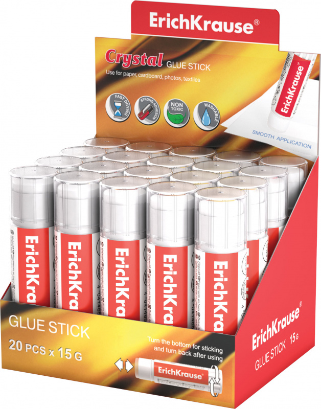 Клей-карандаш ErichKrause Crystal 15гc новой суперсильной формулой и высокой прозрачностью на PVP основе с экономичным расходом, максимально быстрым и надежным склеиванием. Легко смывается водой. Не токсичен. Не содержит растворителя. Морозостоек. Подходит для бумаги, картона и ткани.
