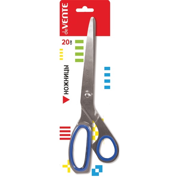 Ножницы канцелярские "deVENTE. Solid" 20 см, цельнометаллические, прорезиненные асимметричные кольца, в картонном блистере