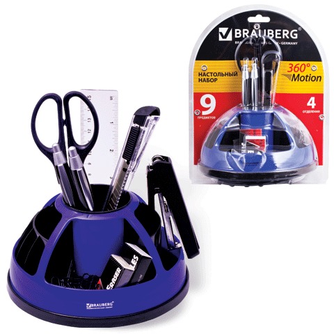Настольный набор из высококачественного пластика c вращающейся на 360 градусов подставкой позволяет эффективно и эргономично организовать рабочее место.