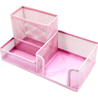 Подставка для канцелярских принадлежностей "deVENTE" 20x10x10, 3 секции, металлическая, розовая.