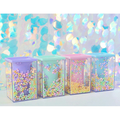 Подставка для пишущих принадлежностей пластиковая 11x7 см, в форме прямоугольника, с дизайном из разноцветных шариков из пенополистирола, в пластиковом пакете, ассорти 4 цвета.