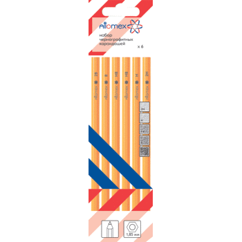 Карандаш чернографитный "Attomex" 06 шт в наб (2Н-2В), диаметр грифеля 1,85 мм, шестигранный, в пластиковой упаковке, цвет корпуса желтый.