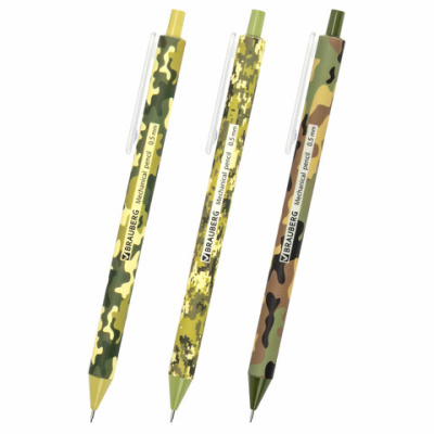 Механический карандаш BRAUBERG SOFT PRINT MILITARY выполнен в трех дизайнах милитари и идеально подойдет для ведения заметок во время работы и учебы.