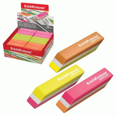 Стирательная резинка со скошенными краями предназначена для стирания карандашных надписей. При стирании стружка от ластика скатывается в единый комок.