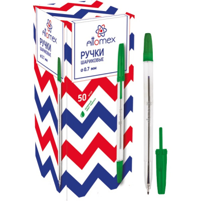 Ручка шариковая "Attomex" d=0,7 мм, прозрачный корпус, сменный стержень, индивидуальная маркировка, зеленая