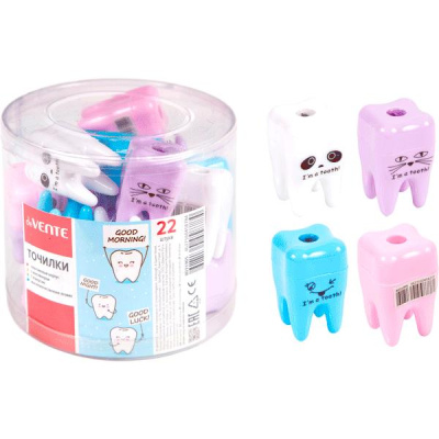 Точилка для карандашей "deVENTE. Зубик", 1 отверстие, с контейнером, пластмассовая, с индивидуальной маркировкой, в пластиковой тубе, ассорти