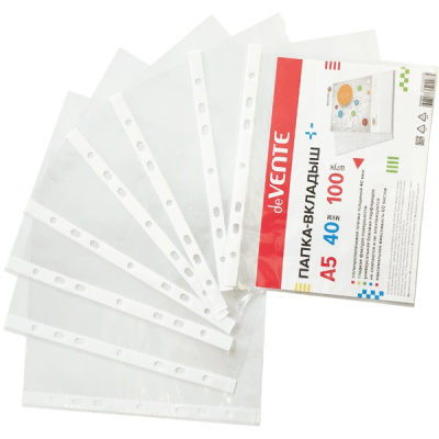 Папка-вкладыш "deVENTE" A5 вертикальная, 40 мкм, гладкая фактура, с универсальной боковой перфорацией, 100 шт в упаковке.
