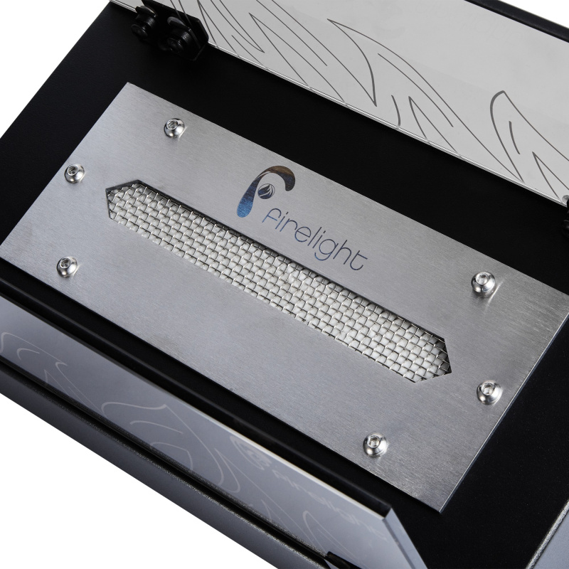 Закаленное жаропрочное стекло настольного биокамина BFP/T-3520 Glass украшено лазерной гравировкой в виде языков пламени и прекрасно акцентирует 20-ти сантиметровую линию живого огня.