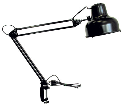 Настольный светильник под лампу накаливания, Е27, 60Вт, на пластиковой струбцине, освещенность H=40 см 870 Лк.
