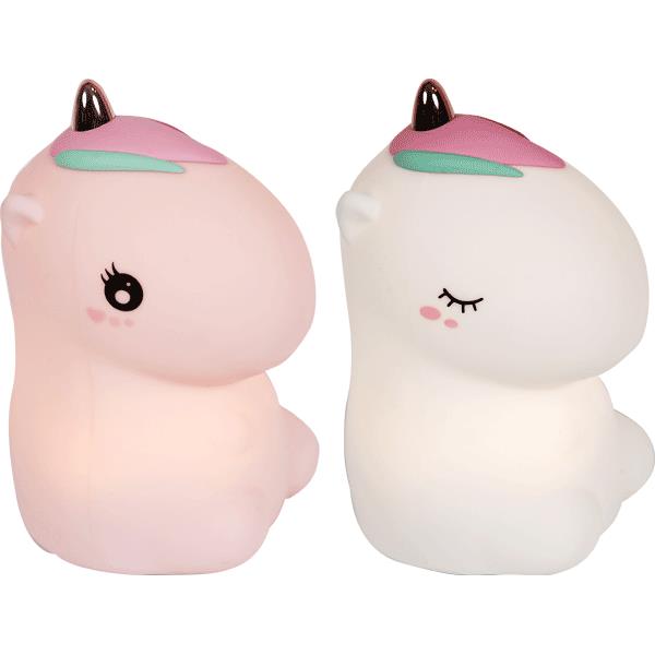 Светильник LED "deVENTE. Единорог" 10,1x12x17,3 см, силиконовый, заряжаемый (DC5V, 1200mA 18650 литиевая батарейка), 8 цветов света, функция контроля касанием, в комплекте с USB кабелем, 2 цвета корпуса (белый и розовый), в картонной коробке