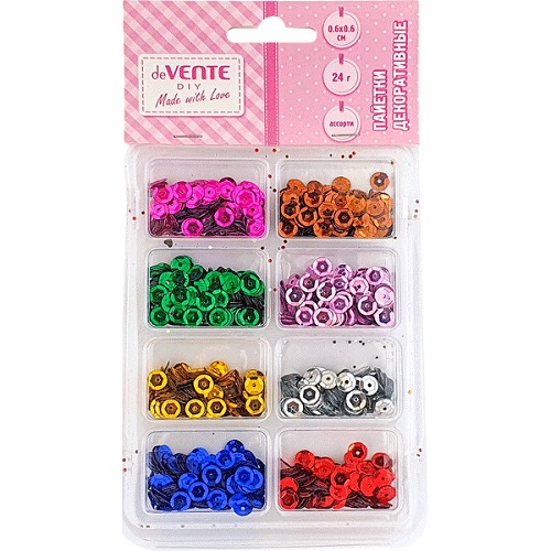 Пайетки декоративные "deVENTE. Metallic" 24 г, размер 6x6 мм, ассорти цветов, пластиковая коробка 112x140 мм, в пластиковом пакете с блистерным подвесом