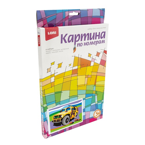 Картины по номерам для малышей от 3 лет. В набор входит картонная основа с нанесенным контуром сюжета, акриловые краски 8 цветов, кисть, палитра, и инструкция. На оборотной стороне упаковки есть инструкция по смешиванию цветов. В процессе рисования развивается мелкая моторика, воображение и фантазия у ребенка.