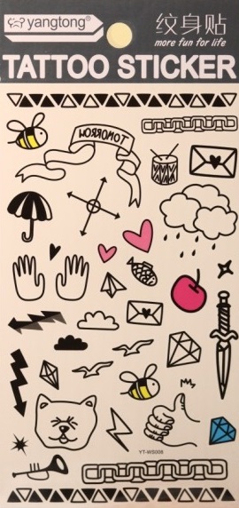 Переводные татуировки добавят ярких и креативных образов на каждый день. Принесут массу позитива и подчеркнут Ваш стиль. Не имеют неприятного запаха, безопасны и не вызывают аллергии. В коллекции наших татуировок есть птицы, сердца, минимализм, восточные надписи, кольца, бабочки, аниме, лотос, и много других переводных наклеек. Временное тату - это интересный аксессуар для фотосессии и отличный повод подчеркнуть свой стиль. Упакованы в полиэтиленовую упаковку, подходят под стойки с крючками. Габариты: 20,5х9,3х0,1 см.
