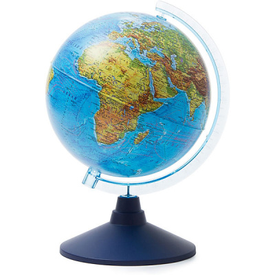 Физический глобус Земли от компании Globen демонстрирует современную поверхность планеты с системами гор, водоемами, разнообразным рельефом. Занятия с глобусом способствуют изучению географии, тренируют память, расширяют кругозор. Копия земного шара расположена на устойчивой подставке — отличное украшение рабочего стола.