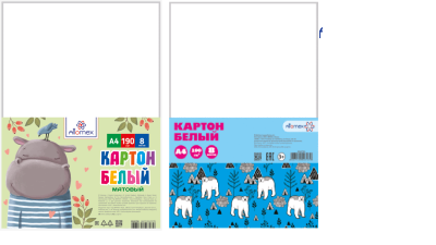 Картон белый "Attomex. Белые медведи" A4 (203x283 мм) немелованный 190 г/м², 8 л, в полиэтиленовом пакете.