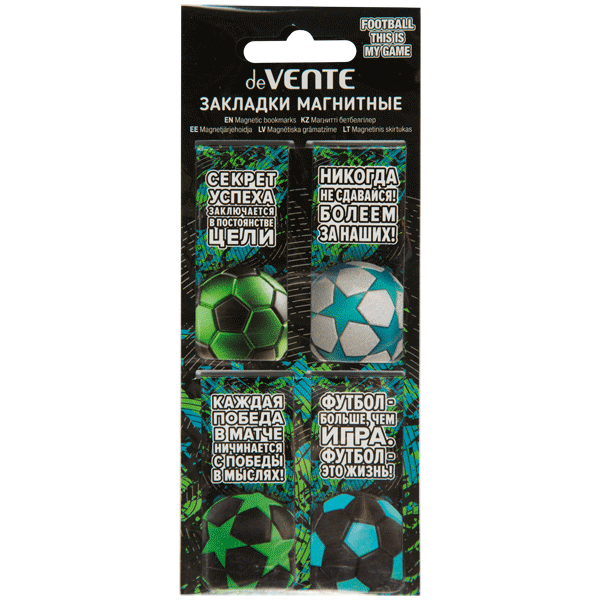 Набор закладок для книг "deVENTE. Football" магнитных бумажных, 4 шт в блистерной упаковке, размеры закладок в сложенном виде 25x56,6 мм