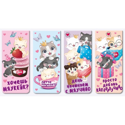 Набор закладок для книг "deVENTE. Sweet Cats" магнитных бумажных, 4 шт в блистерной упаковке, размеры закладок в сложенном виде 25x56,6 мм.