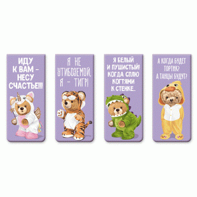 Набор закладок для книг "deVENTE. Teddy Bear" магнитных бумажных, 4 шт в блистерной упаковке, размеры закладок в сложенном виде 25x56,6 мм